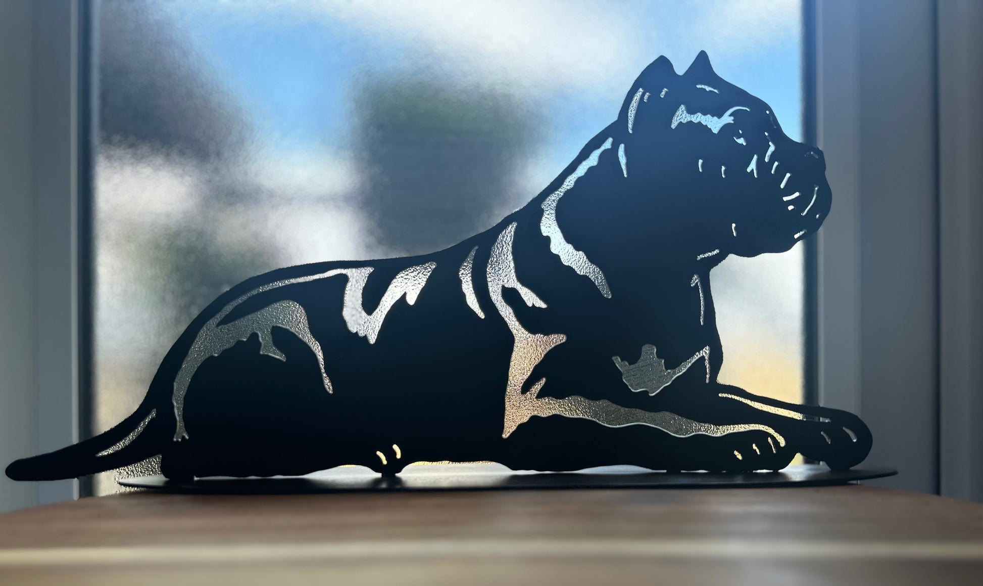 Maak kennis met deze 100% handgemaakte stalen Cane corso dit is een krachtig en uniek cadeau dat perfect staat aan de muur of schutting, of bijvoorbeeld in de tuin, op het terras of op de veranda.