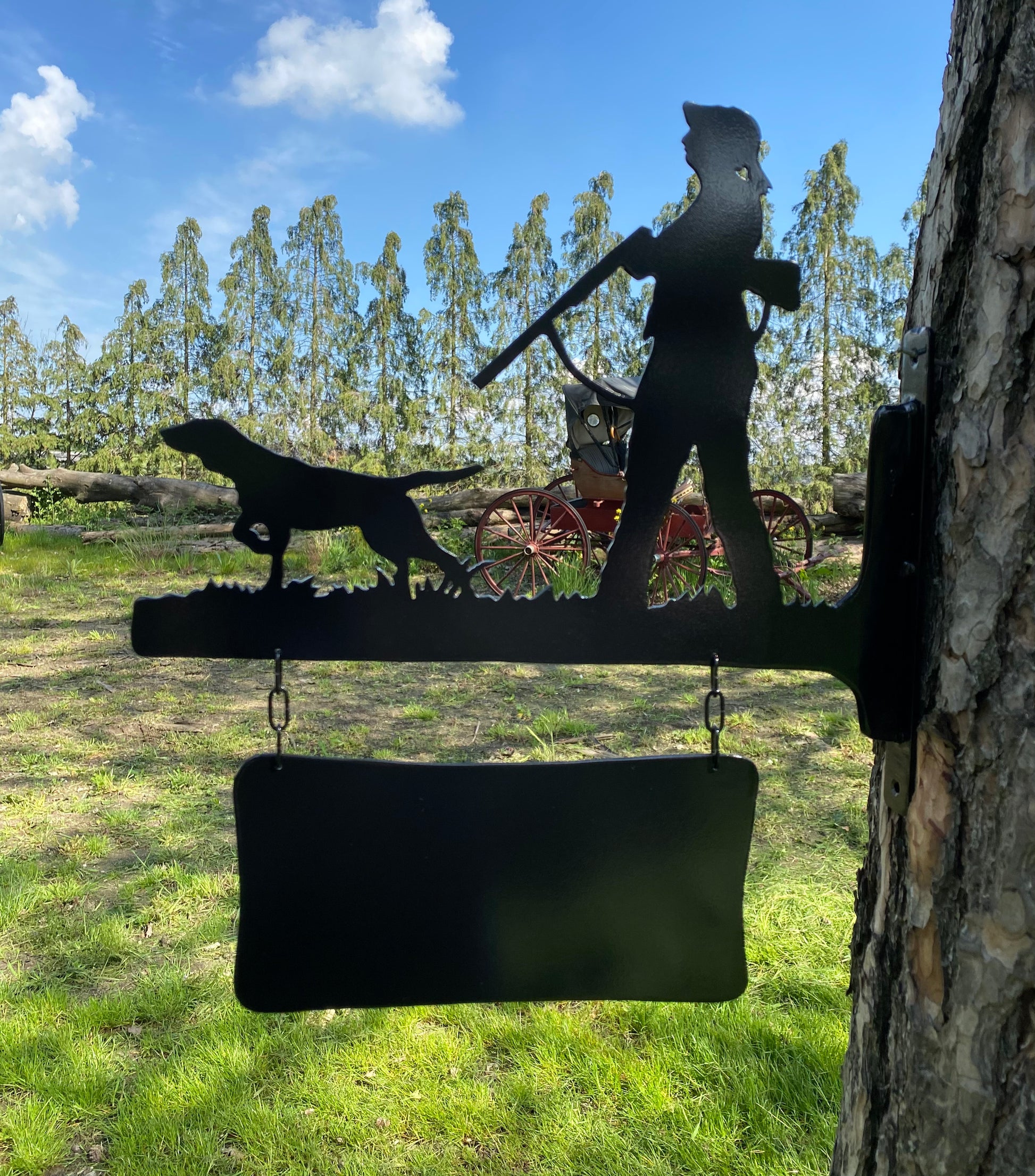 Elk naambord is volledig met de hand gemaakt en daardoor uniek. Het ontwerp toont een klassiek jachttafereel, ideaal voor jacht- en wildliefhebbers. Een prachtig cadeau voor iemand speciaal of voor jezelf